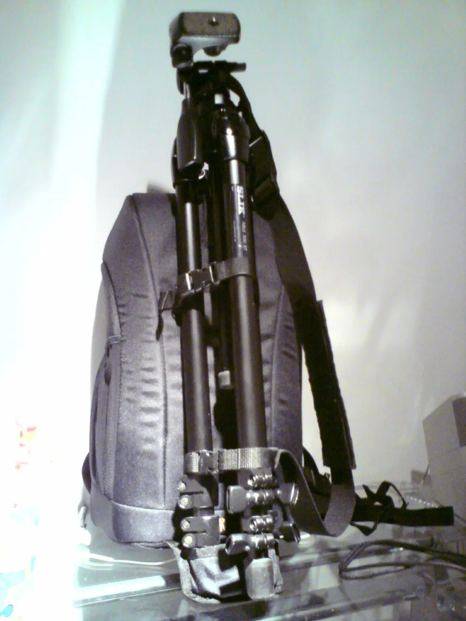 三脚2.3kgだしなぁ。1kgぐらいじゃないと厳しそう。バッグの後ろにむき出しだから人に当たったら大変ってこともあるので安全性を考えると1kg前後が妥当です。