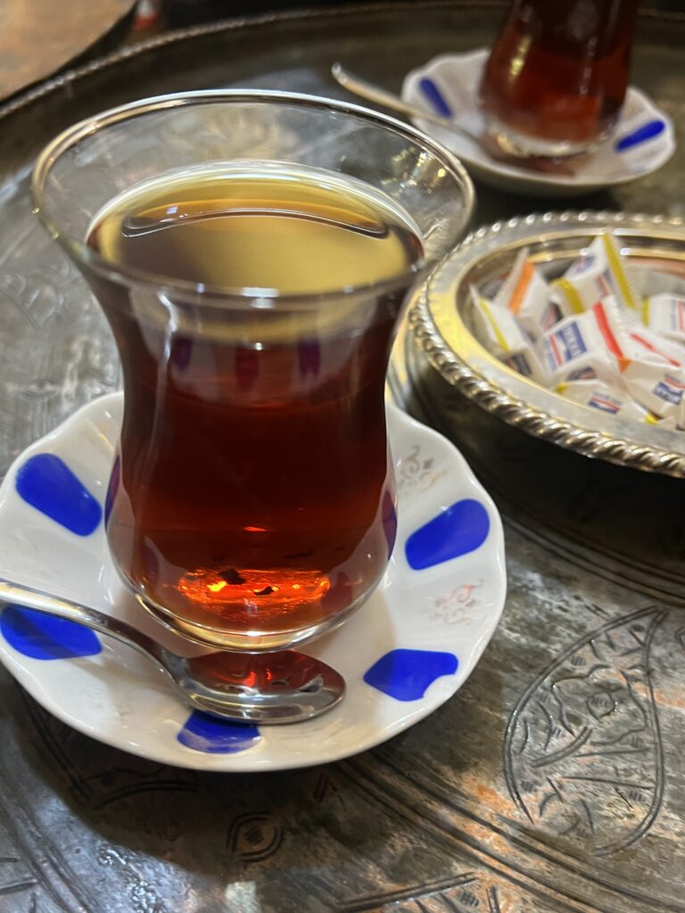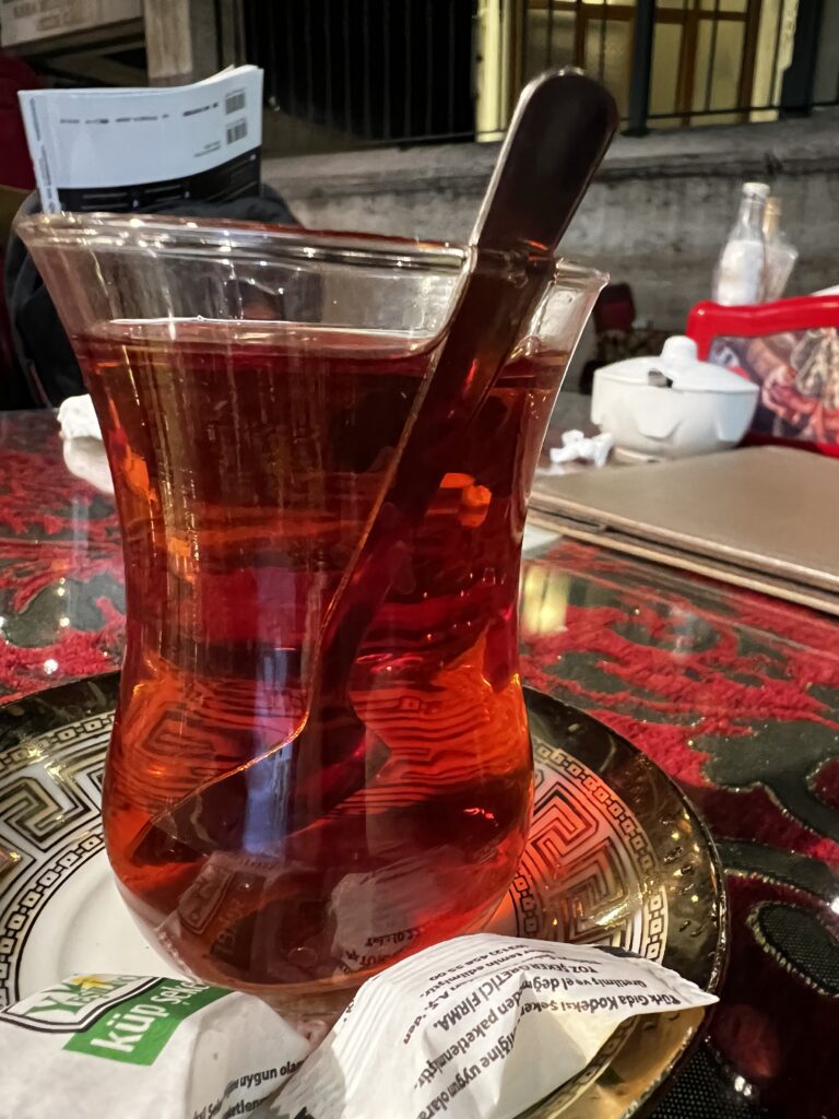 食後のチャイ。トルコで言うチャイは、ふつうの紅茶。スパイシーなインド的なチャイではない。