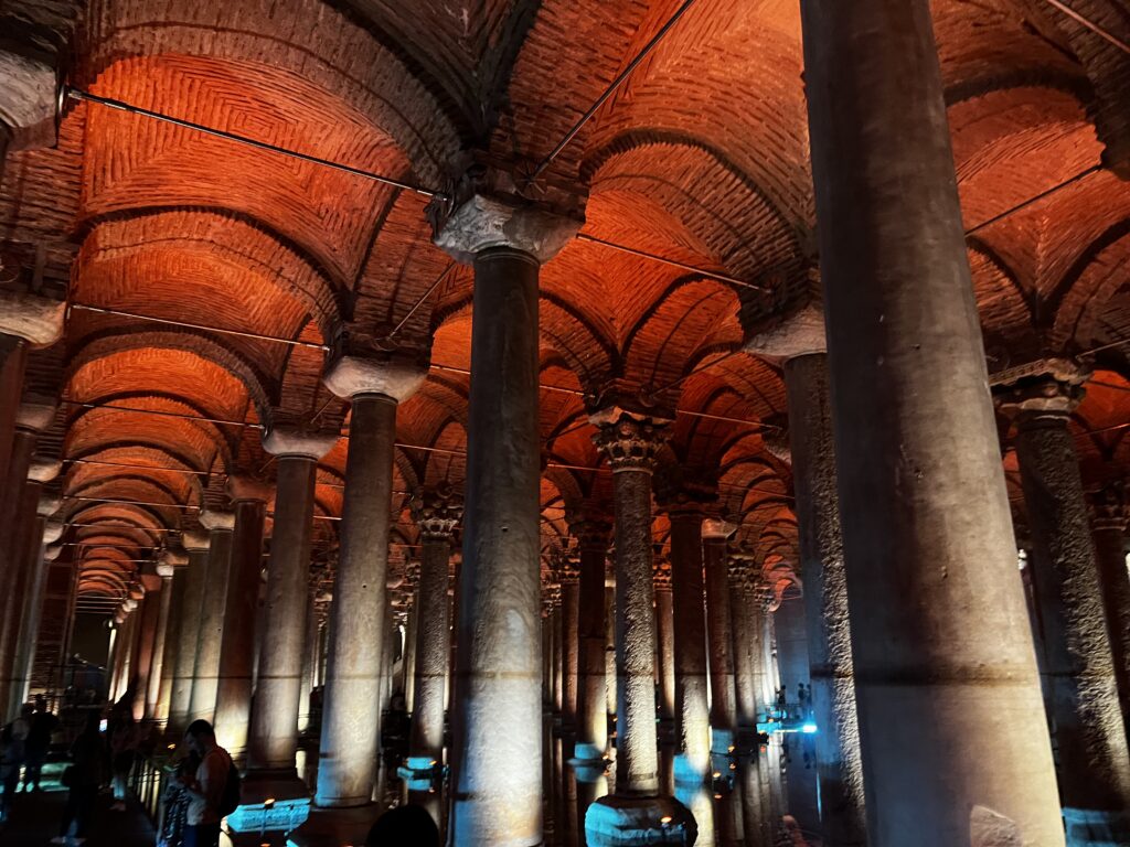 ビザンツ帝国時代(6世紀)に造られた巨大な地下貯水池で、天井を支える数百本の円柱が幻想的な雰囲気を作っています。