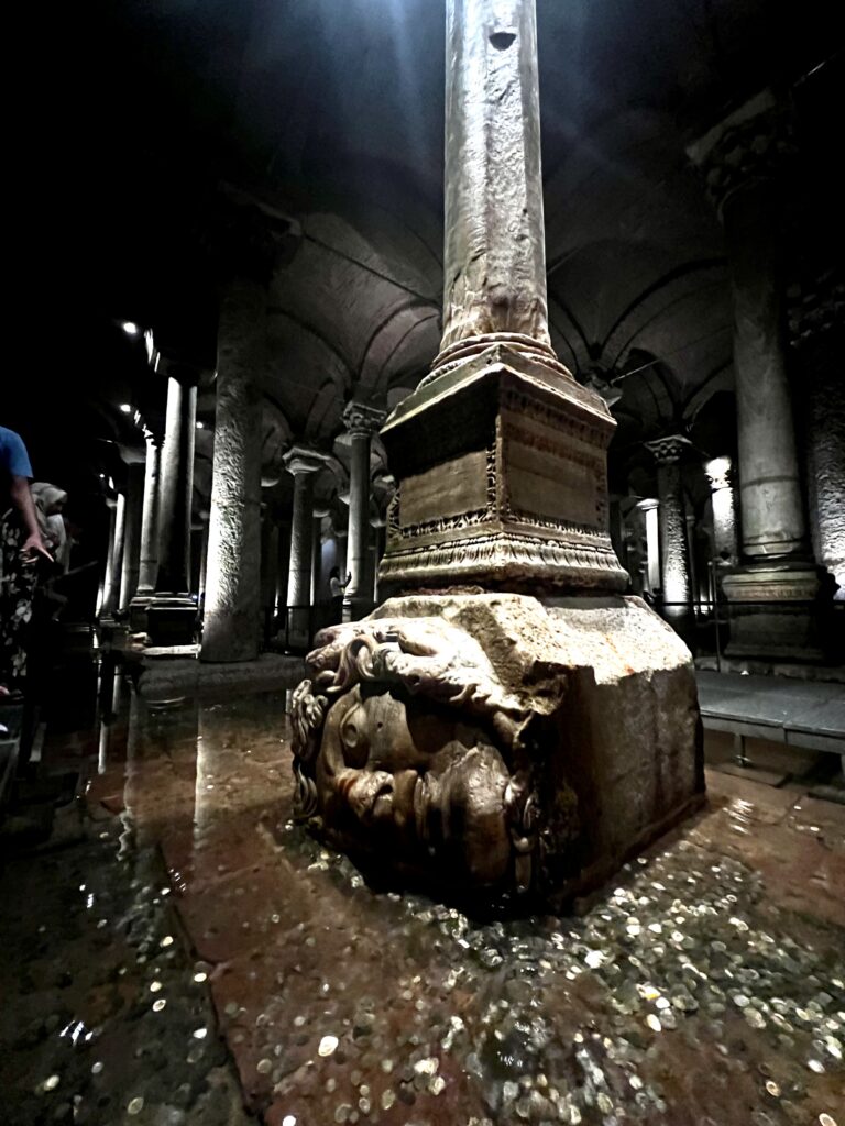 水を貯めるために造られた「地下貯水池」であり、かつて宮殿や市街に水を供給していました。これはイスタンブールにある有名な地下貯水施設「バシリカ・シスタン」(英: Basilica Cistern)です。