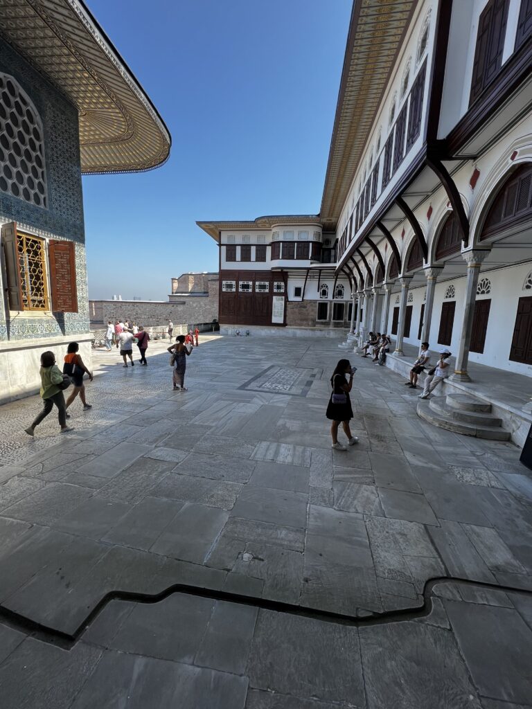 ハレムの内部は、壁を埋め尽くす見事なイズニックタイル、金を用いた装飾、精巧な螺鈿(らでん)細工など、オスマン建築と美術の粋を集めた豪華絢爛な空間が広がっています。数世紀にわたって増改築が繰り返されたため、さまざまな時代の様式が混在しており、建築史的にも非常に価値が高い場所です。