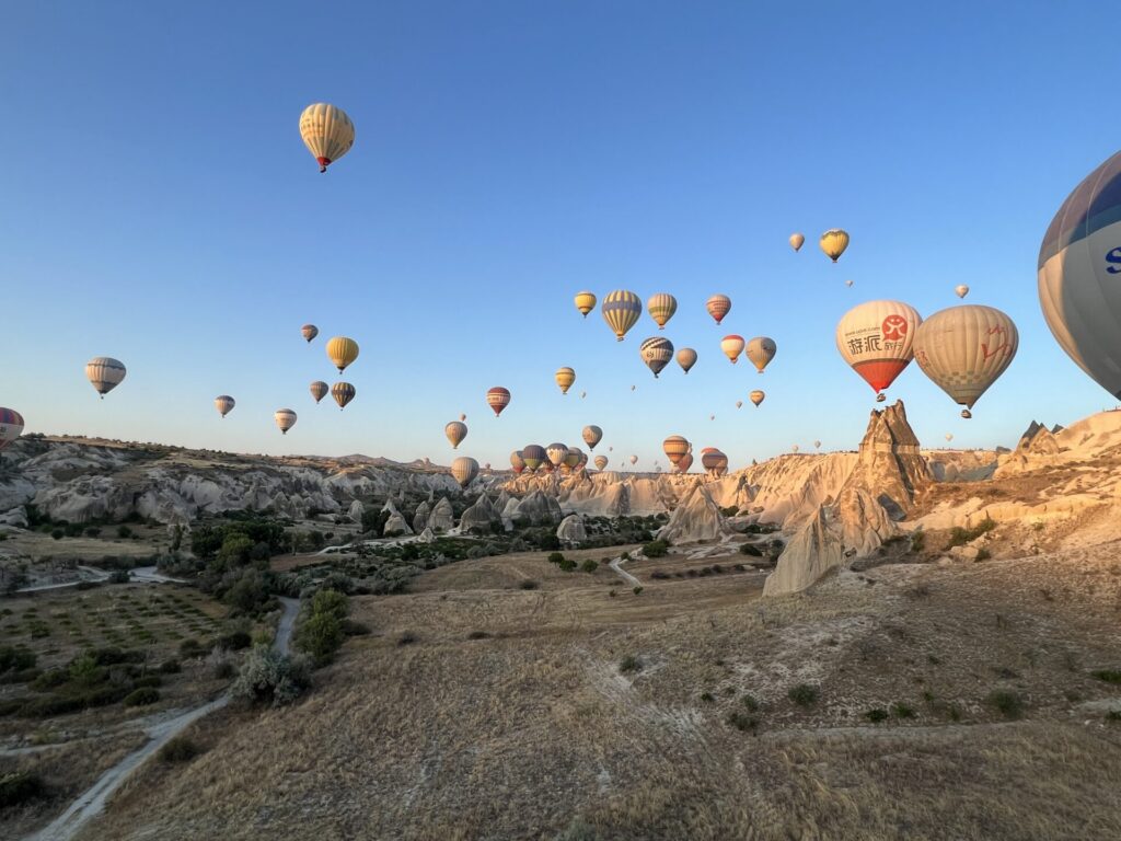 朝、玄関を開けるとこんな風景でした。ホテルの間近無所も気球が飛んでいます。数十メートル先ぐらいまで気球が飛んできたりしていました。
