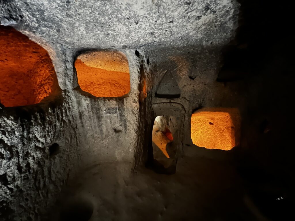 トルコ中央部、世界遺産カッパドキア地方にある巨大な古代の地下都市です。火山灰が固まってできた柔らかい岩盤を掘り進めて造られており、その規模は地下8階層、深さ約55メートルに及びます。