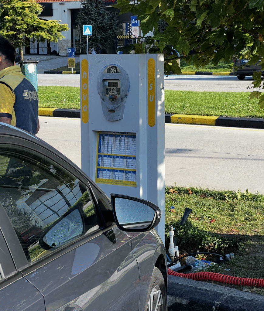 ちょうど立ち寄ったアウトレットモールとサービスエリアが合体した施設でガソリンスタンドもあったので空気を充填しました。単位が謎な単位だったのでスマホで調べながら色々とやって充填しました。