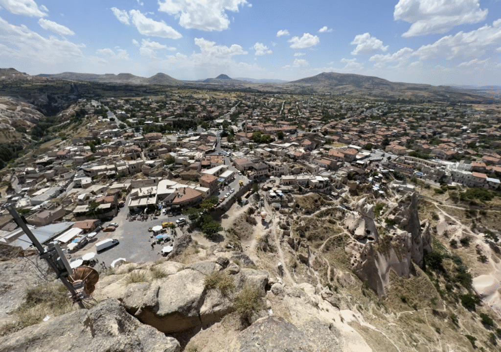 360度のパノラマビュー: 頂上に登ると、カッパドキアの奇岩群、ギョレメの街並み、ローズバレーなど、息をのむような360度のパノラマ絶景を一望できます。気球が飛んでいる時間帯に訪れると、さらに幻想的な風景が楽しめます。