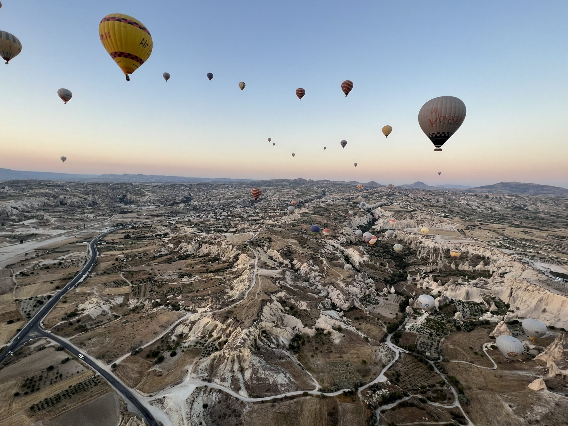 4時頃に起床して気球に乗りに行きます。気球から日の出を見るのがおすすめとのことなので。料金は一人3万円か4万円したと思います。あと1万円ぐらい安い業者もありますが、数年前に気球が墜落しているので安全性が高そうな業者にしました。2週間前で予約がギリギリでした。