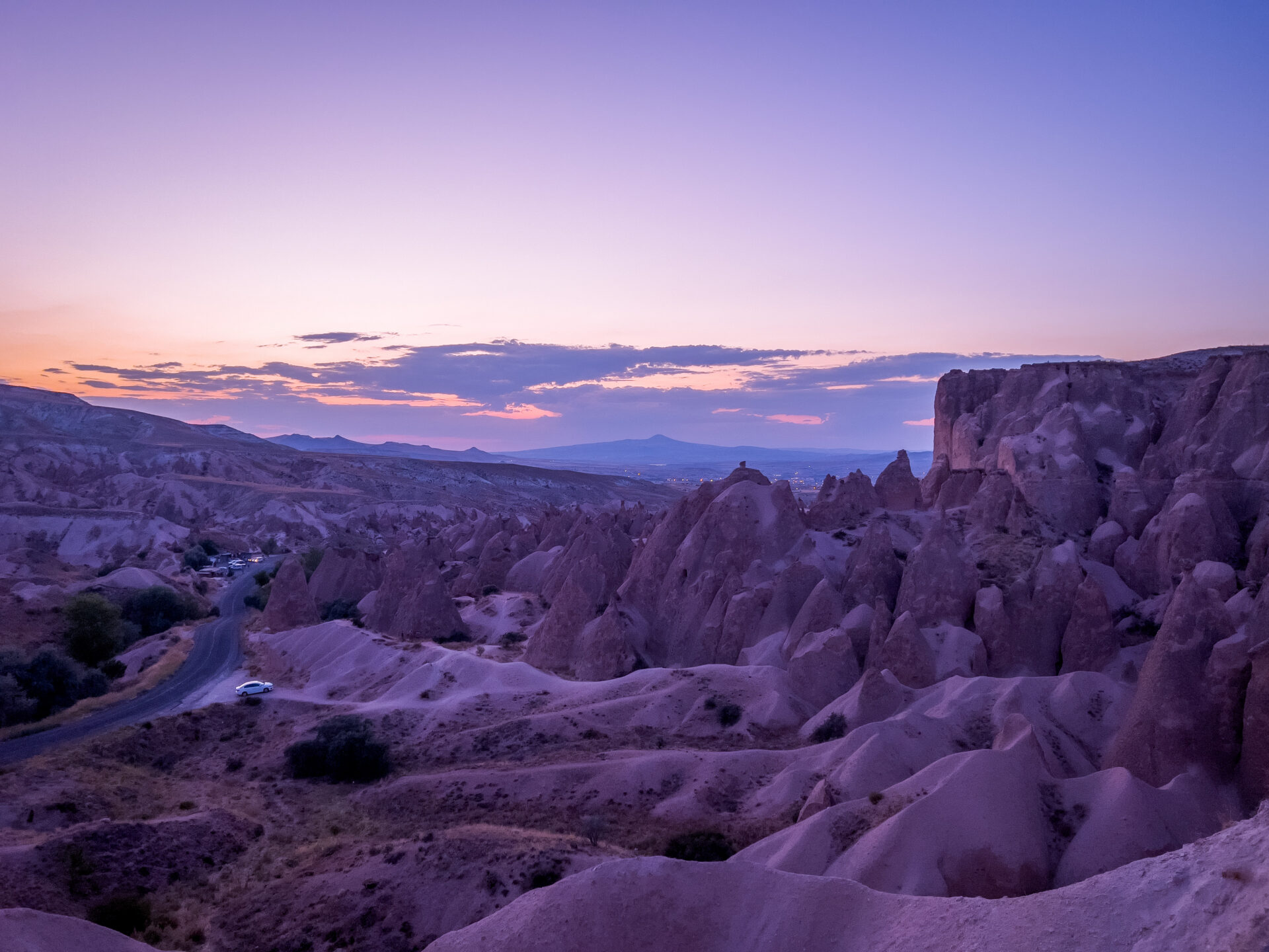 360度のパノラマビュー: 頂上に登ると、カッパドキアの奇岩群、ギョレメの街並み、ローズバレーなど、息をのむような360度のパノラマ絶景を一望できます。気球が飛んでいる時間帯に訪れると、さらに幻想的な風景が楽しめます。
