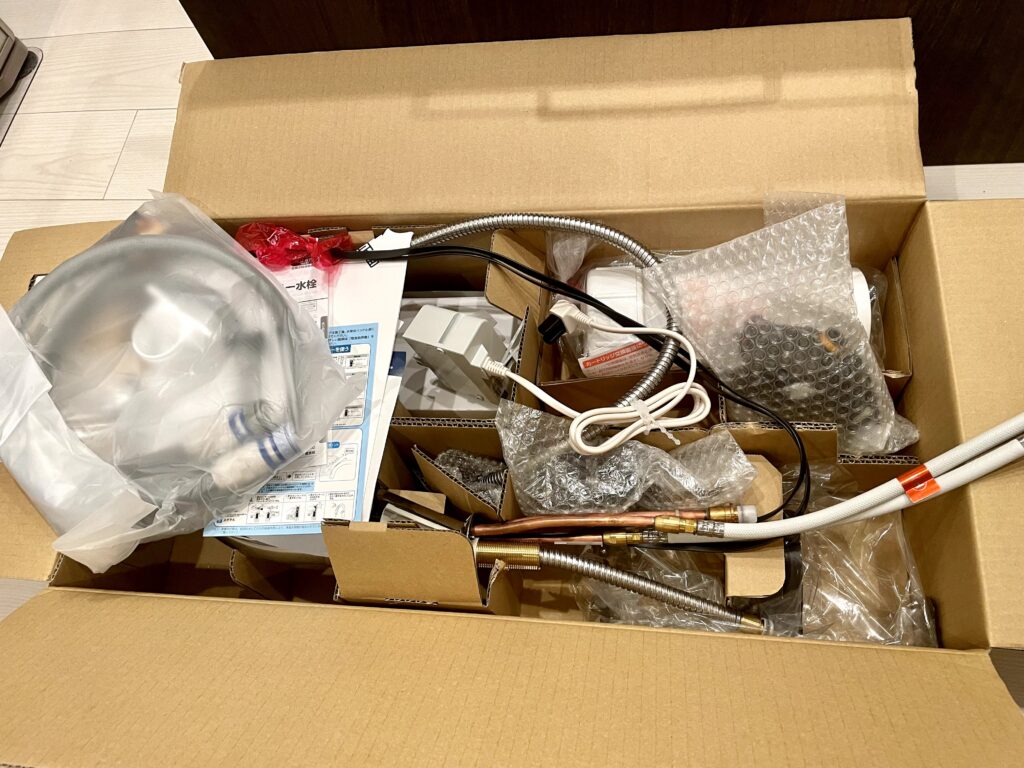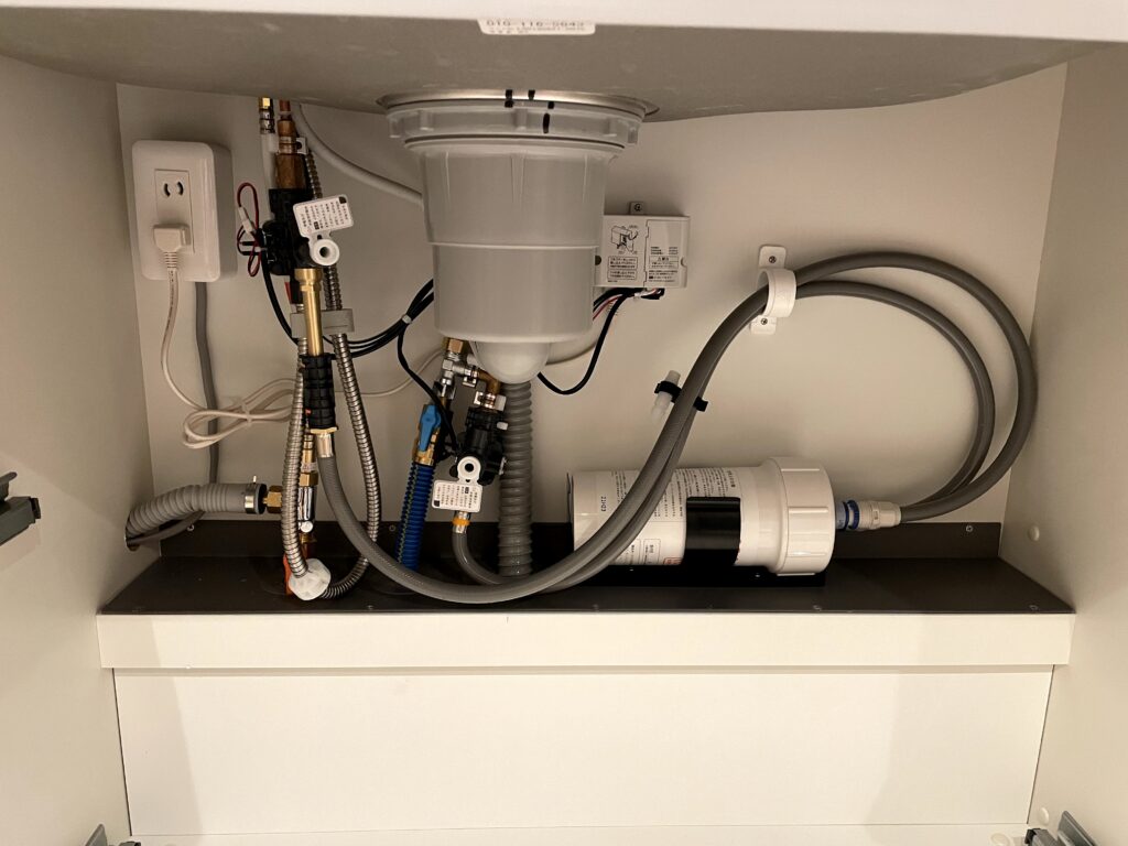今回取り付けたのは一番高いものです。「浄水器付き」「電源あり」です。電源はコンセントが必要になります。近くにあればよいですが、ない場合は分岐して持ってくる必要があります。