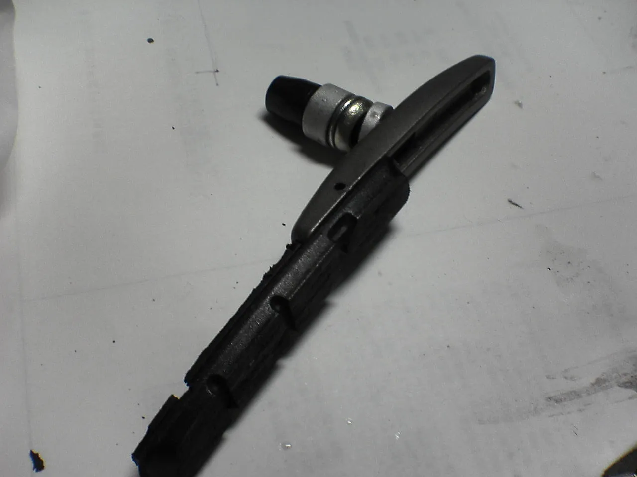 シューは、本体とゴムのパッドから構成されており、1本のピンでとまっている。