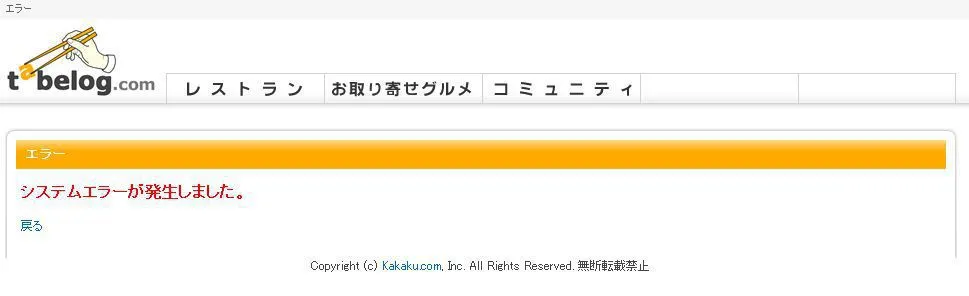 息抜きのために、tabelogに口コミを投稿しようとして、ボタンを押したらエラー。 @AM 5時。 orz