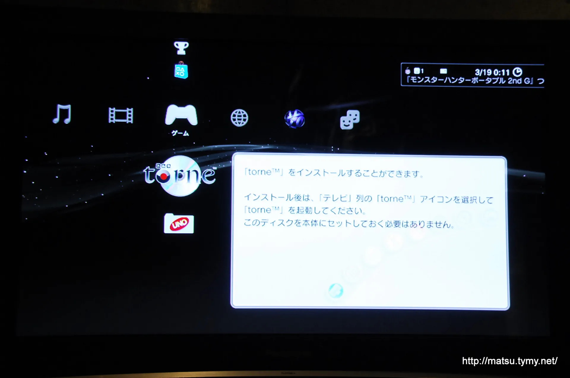 torne起動中は緑に光る