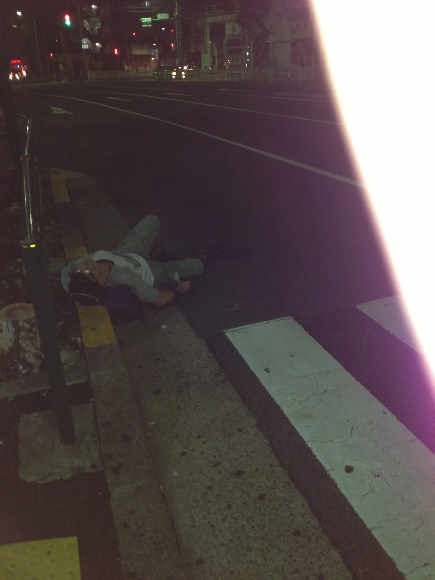 西日暮里あたりで、道に寝てる人発見↓
