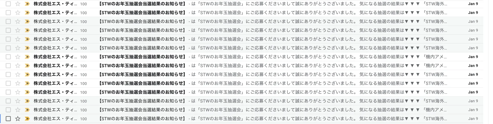 このたびは「STWのお年玉抽選会」にご応募くださいまして誠に ありがとうございました。