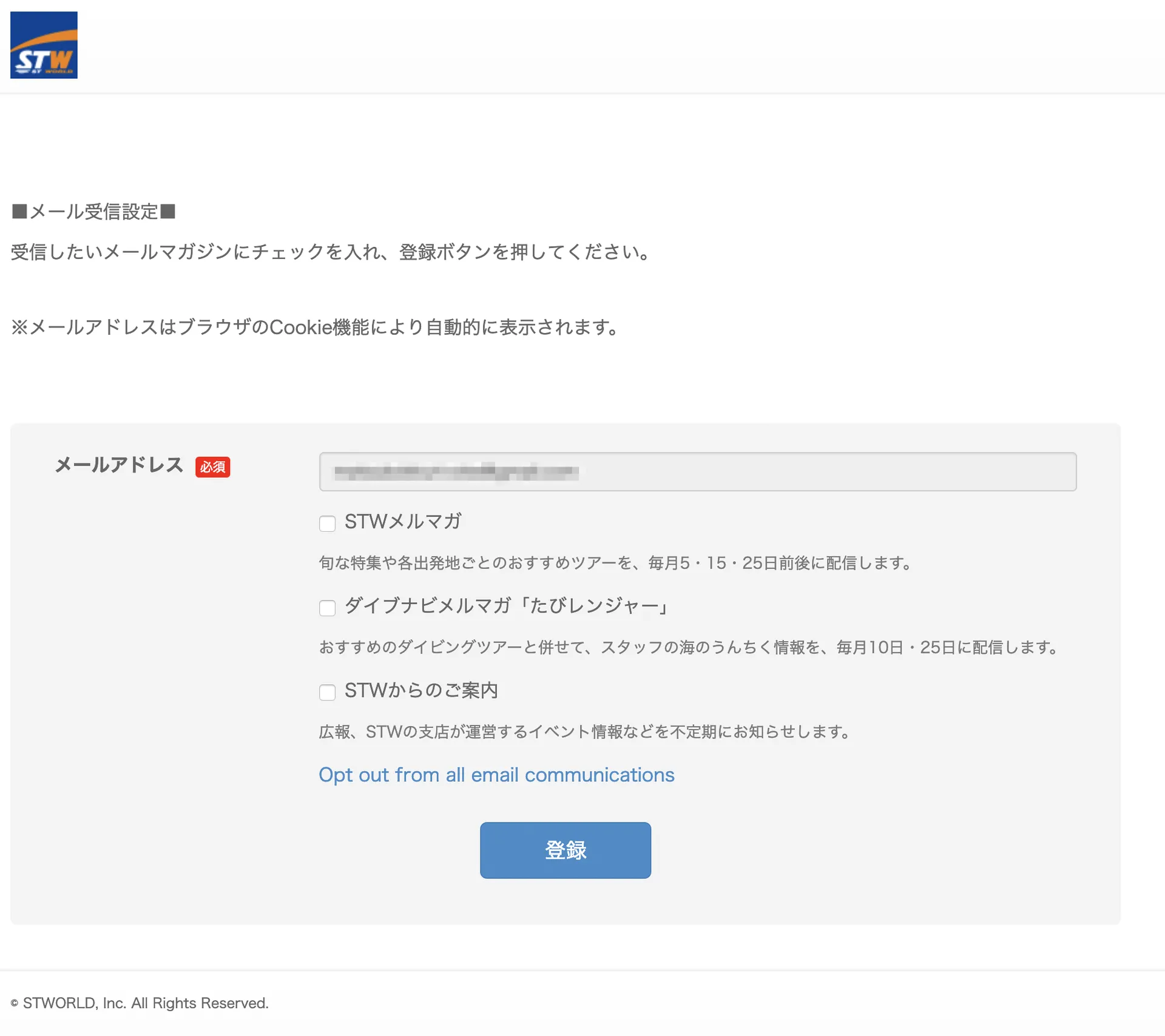 今後、弊社からのメールをご希望されない場合は下記をクリックし てください。 https://go.stworld.jp/emailPre ference/e/223282/577/xxxxxxxx