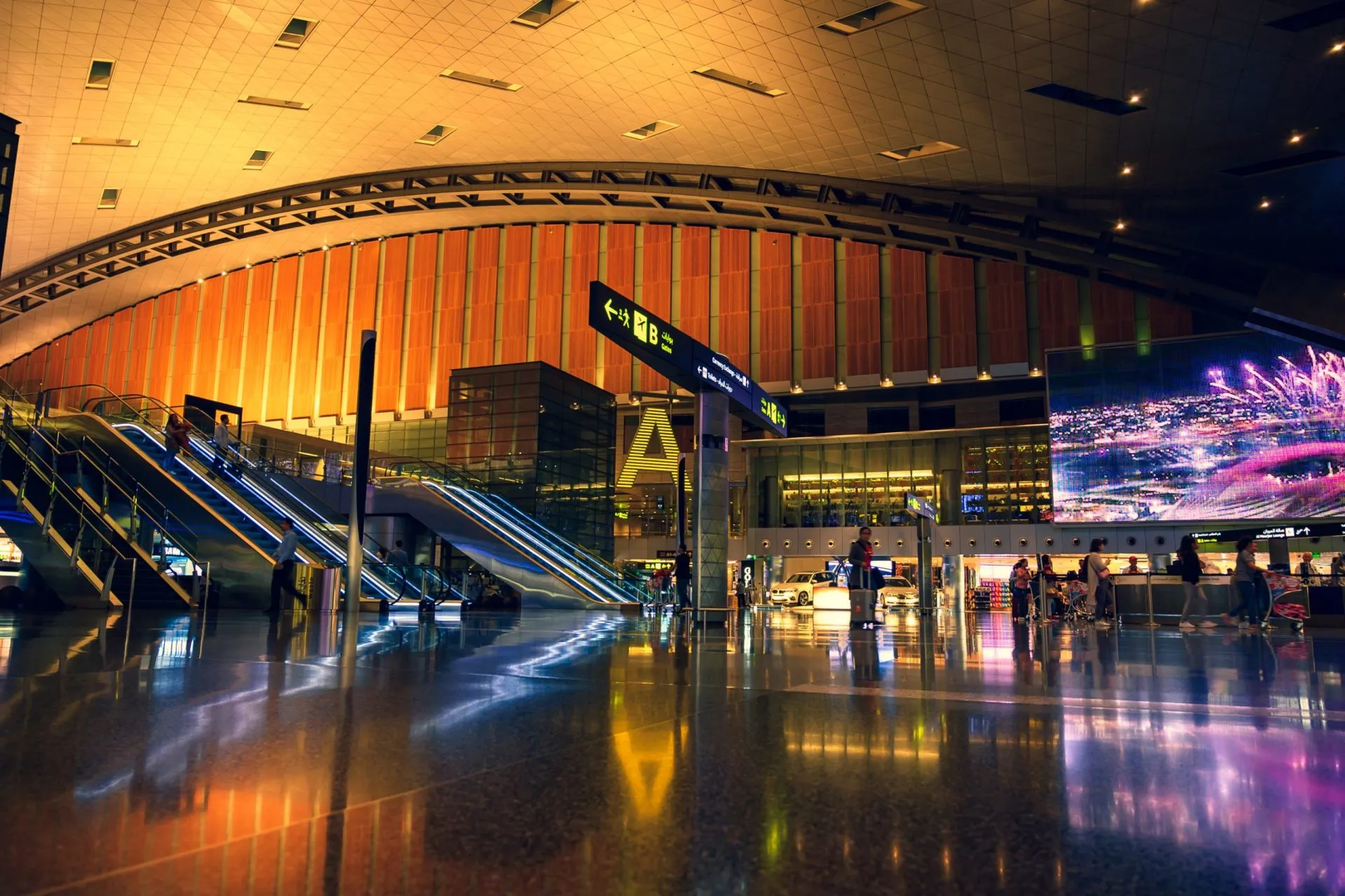 Doha。早朝に到着。人が少ないけどお店は24時間営業だから店員はたくさん居る。