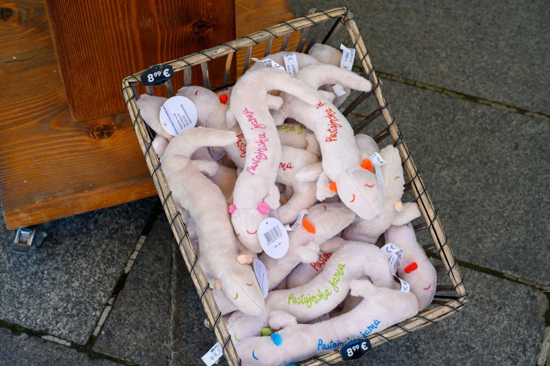 ヒューマンフィッシュ。洞窟内に生息していて目は退化し、肺呼吸する。餌無しで10年間生きられる。日本語名はホライモリ。