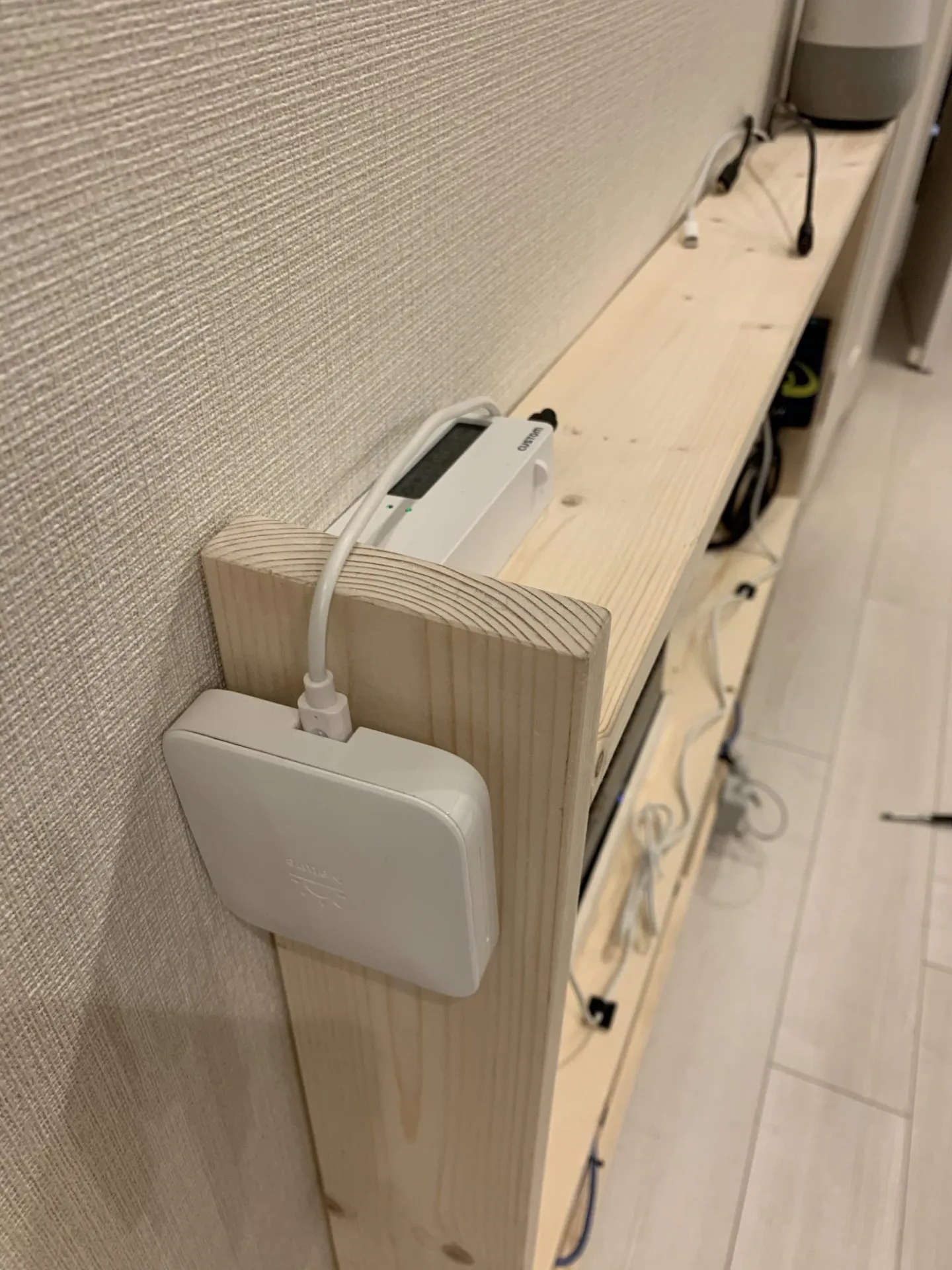 - インターネット関連の機材は大きめなので綺麗に設置するのが難しいく、既製品ではちょっと要望に合う物が見つからないので無いので自作しました。