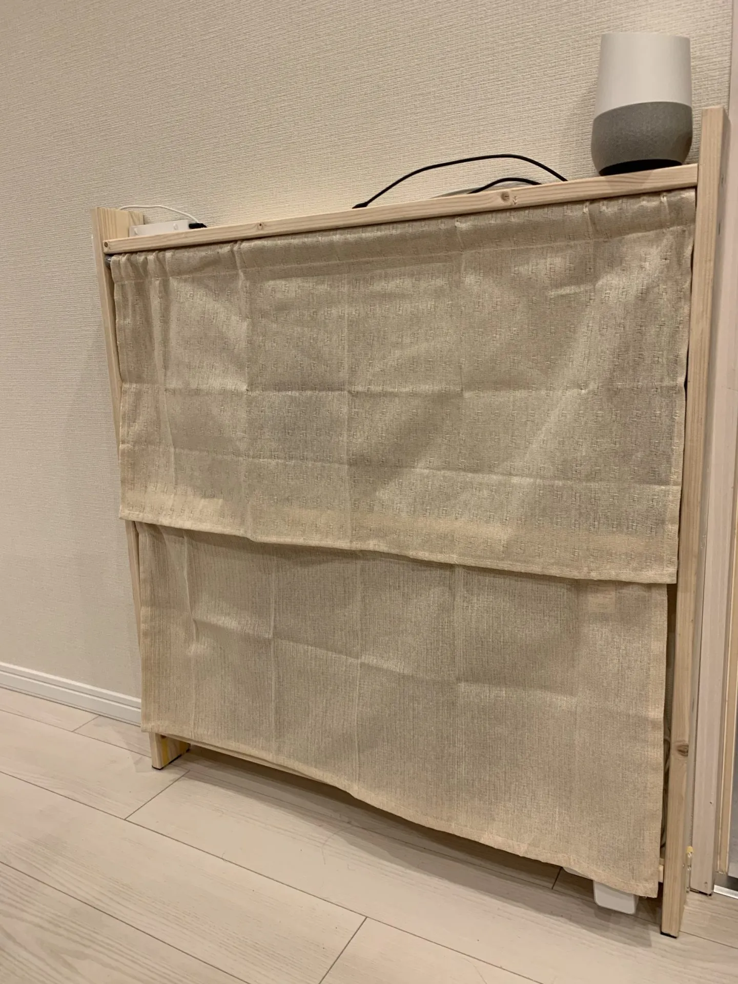 完成図。100円ショップの目隠し布。