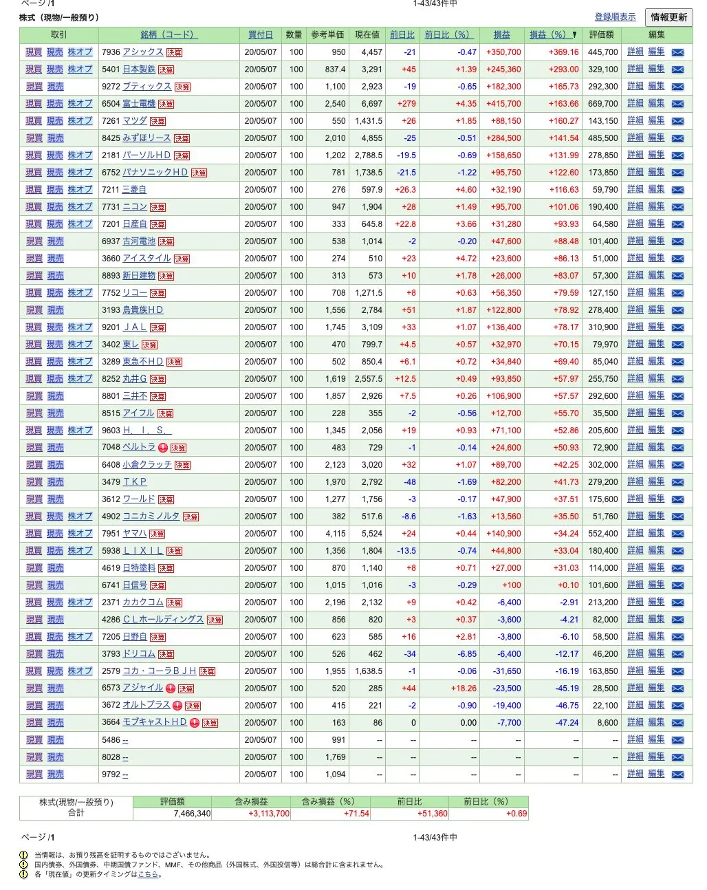 71.54%の含み益。配当も考えるともっと行きそう。