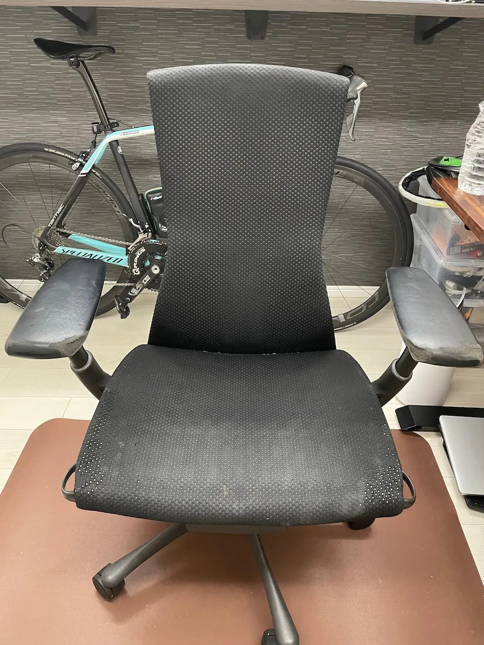 Embody Chairを買ってから15年ぐらい経ち、一度も掃除がしたことがありませんでした。なので、ファブリックの面が少しベタベタ感が出てきたのでオーバーホールに出したいなぁと思ってました。