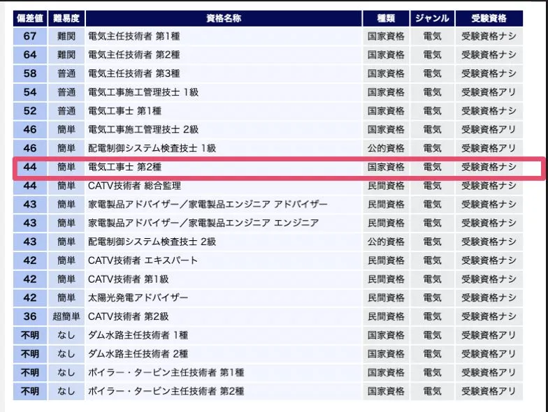 資格偏差値は44なので低いです。