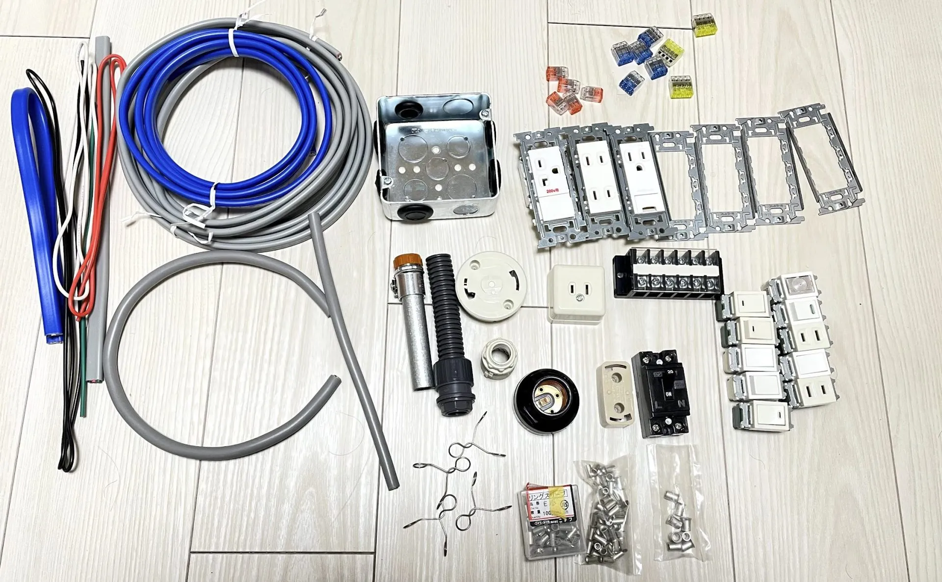 令和7年度(2025年)第二種電気工事士技能試験の候補問題全13問を、それぞれ1回ずつ練習できる電線と器具がセットになっています。