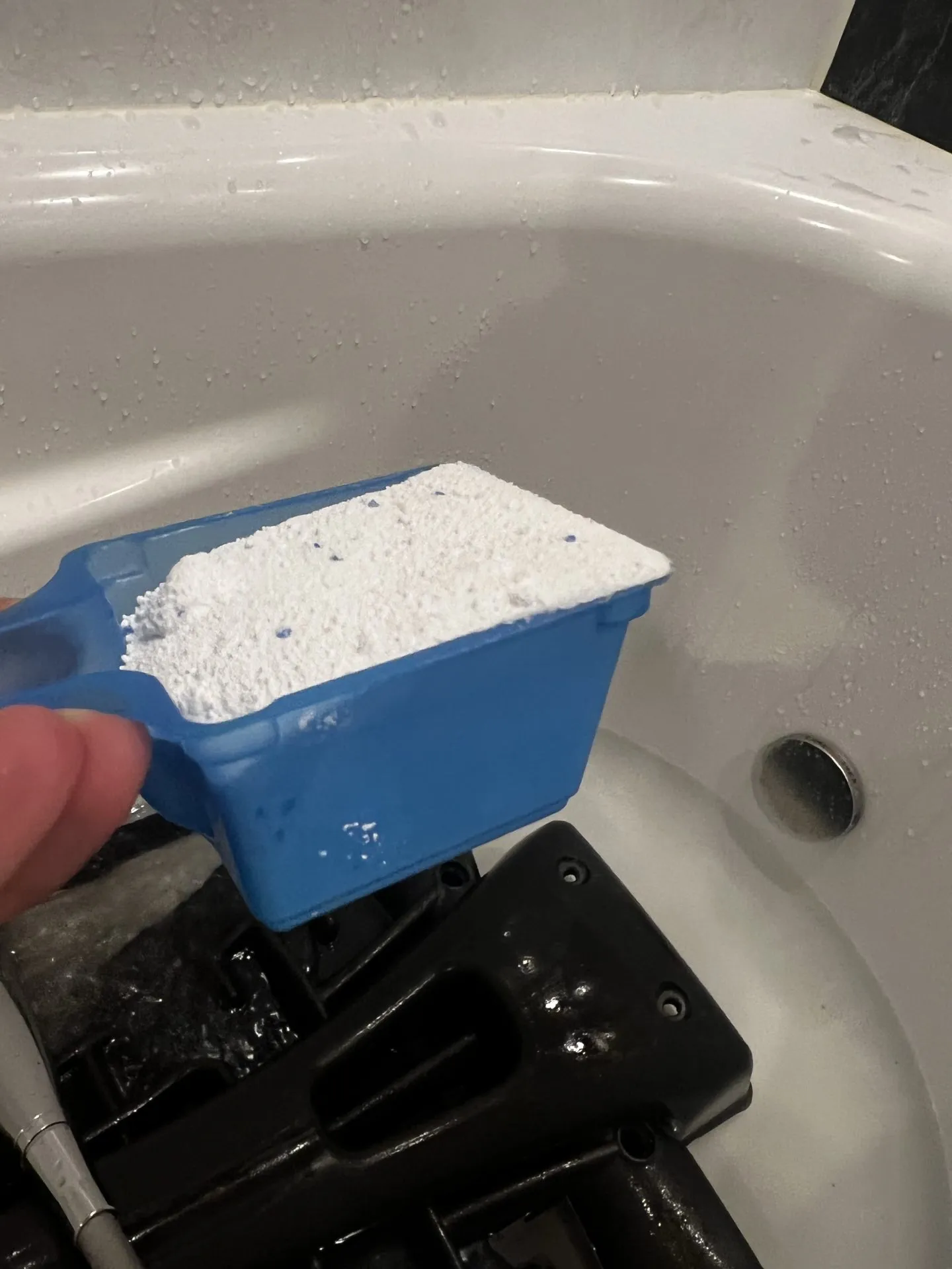 風呂にお湯を溜めます。オキシ漬けをするためには40〜50度が適温らしいので給湯器の最大温度である55度で給湯します。