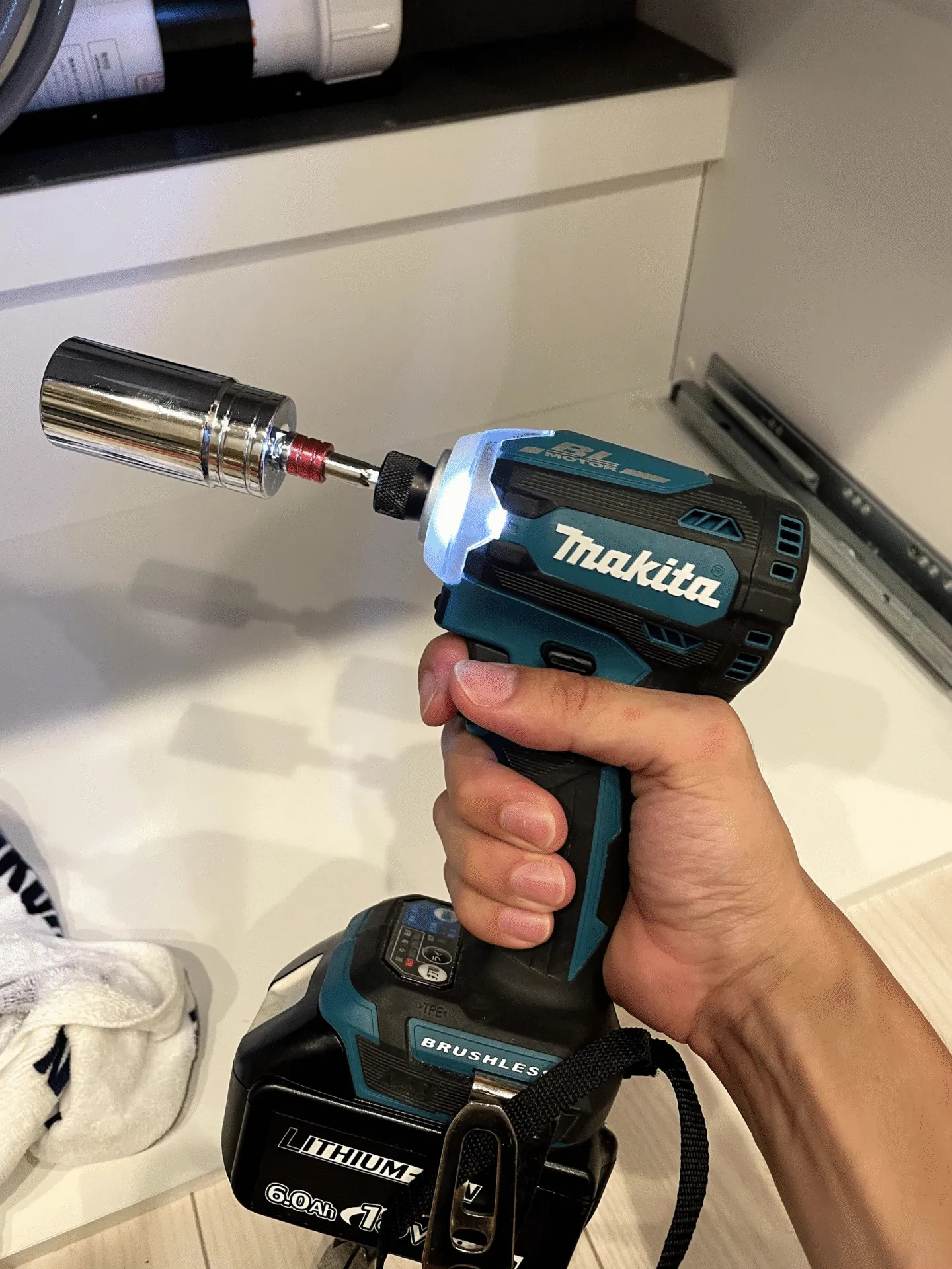 まずは古い混合水栓を取り外す必要があります。24mmのロングソケットが必要だったので別途買いました。